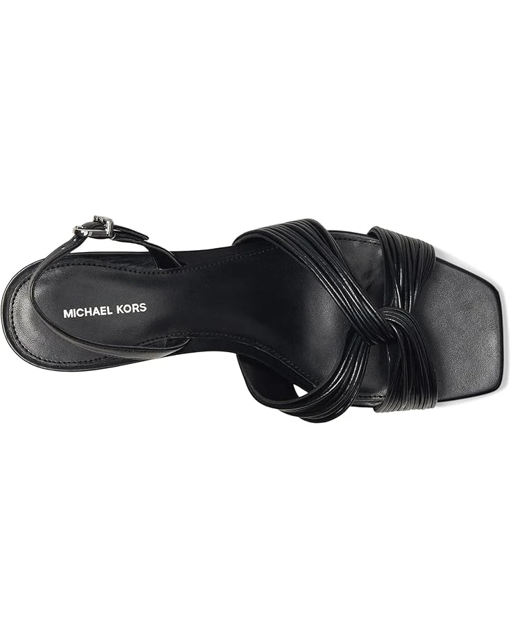 - The MICHAEL Michael Kors® Alessia Kitten Sandal boasts beautiful bombe pleated twist design that adds a touch of luxury. Featuring a sophisticated square toe and a buckle adjustable slingback strap, this sandal combines modern chic with timeless appeal.
