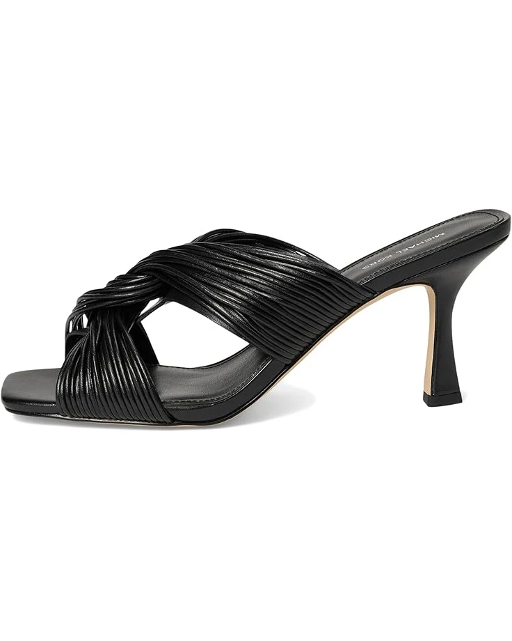 - Give a classic touch to your modern statement look wearing the MICHAEL Michael Kors® Alessia Mule Sandal. Crafted from PU upper, polyurethane lining, and faux leather insole, this pair of sandals features open square toe, bold, textural, twisted straps design, tiletto heel, slip-on style, and brand detailing on the footbed.