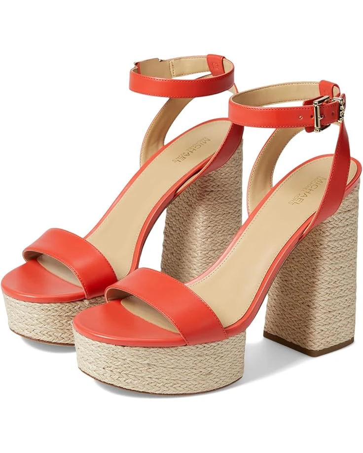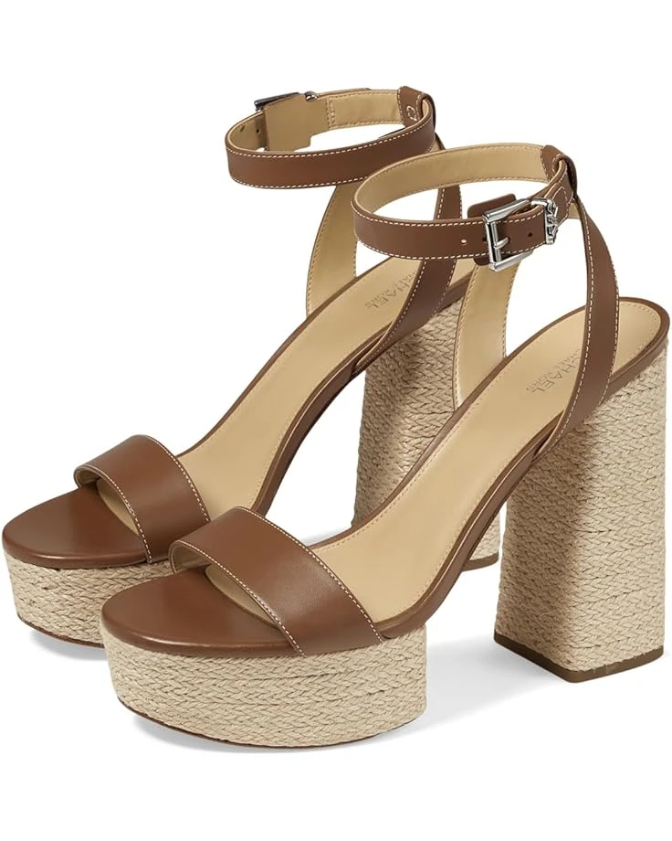 - Exude your fashion-forward style by complementing versatile outfits with the MICHAEL Michael Kors® Ashton Platform Heels with contrast stitched details and branded hardware. The heels are crafted with a leather upper, faux leather lining, and cushioned synthetic insole. The sleek ankle strap with empire buckle closure allows a customizable fit and the solid block heel gives an elevated appeal.