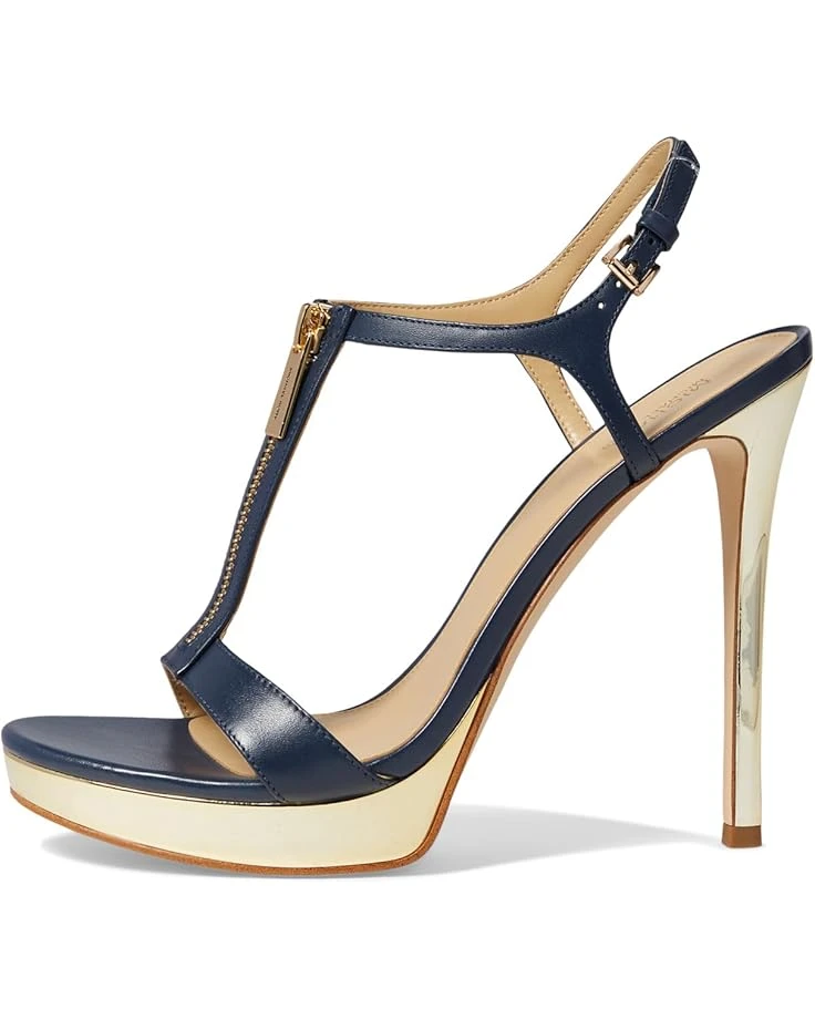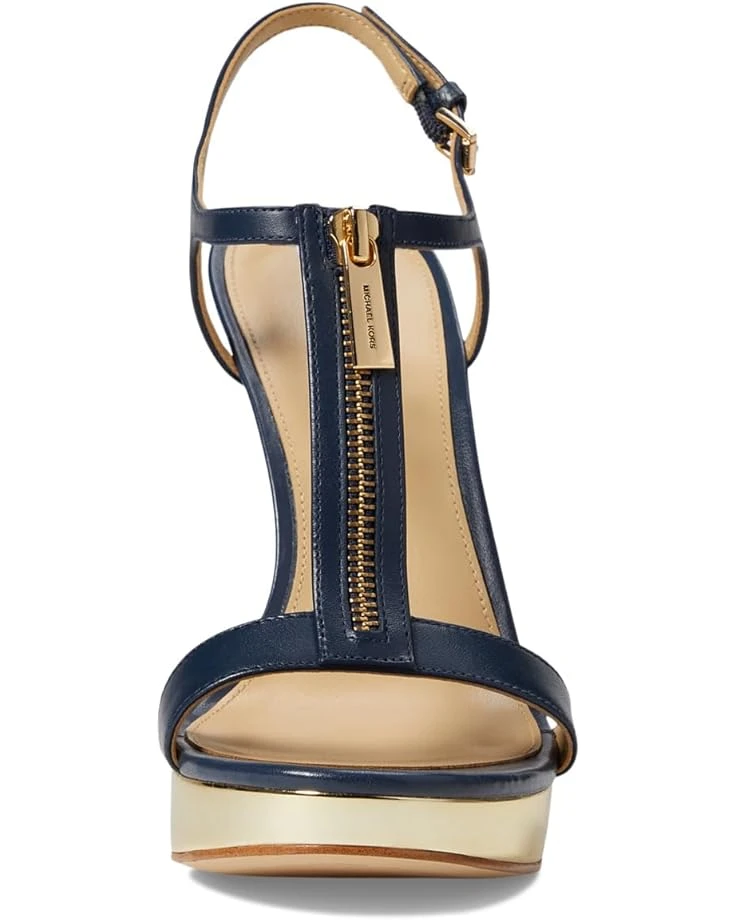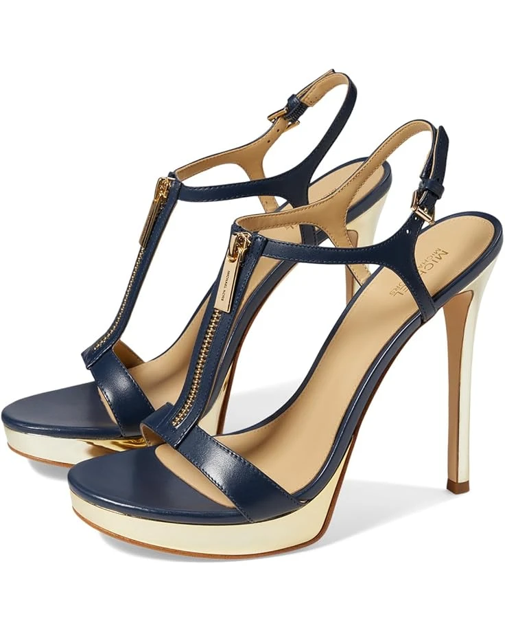 - Showcase your love for timeless fashion trends wearing MICHAEL Michael Kors® Berkley Stiletto Platform Heeled Sandals. This open round toe pair features leather upper construction with zippered front closure and buckled ankle strap closure.
