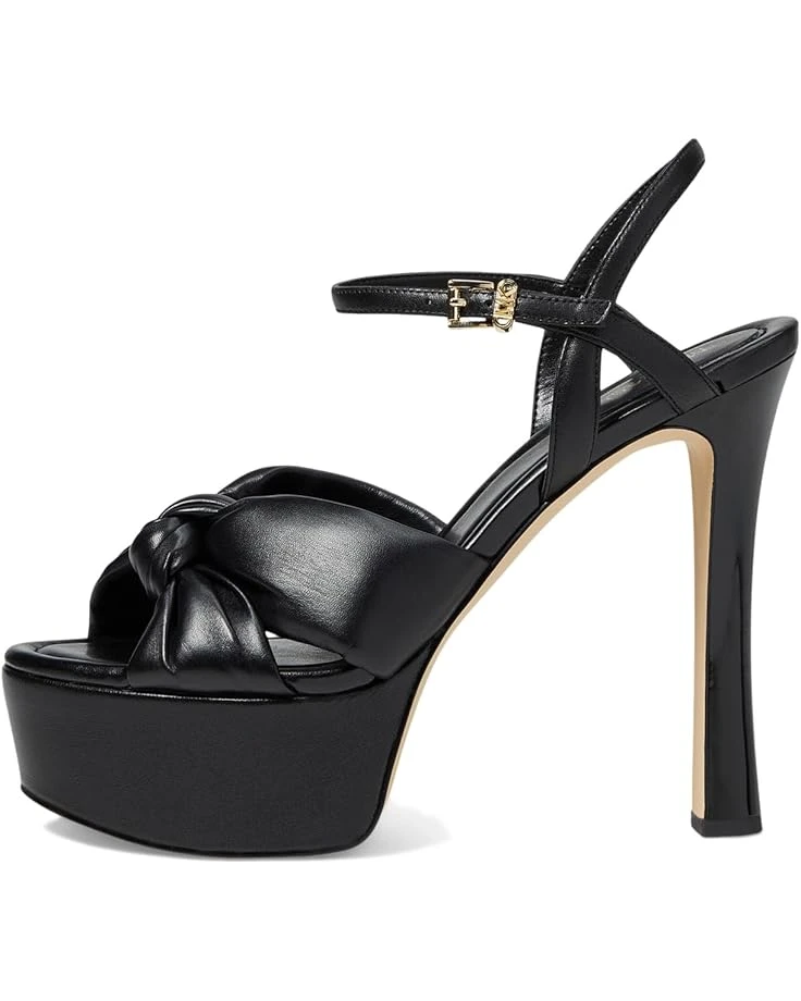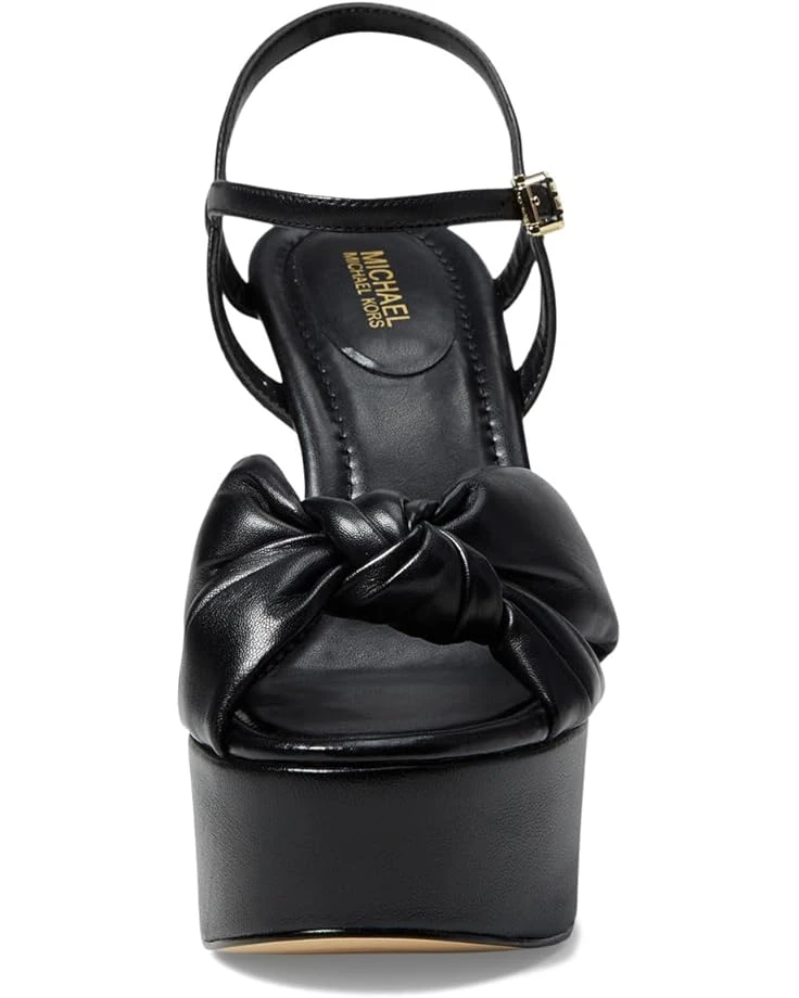 - Step into the spotlight wearing the MICHAEL Michael Kors® Elena Platform. Crafted from leather upper, and synthetic insoles, this pair of cushioned sandals features beautiful knot design on the vamp, padded footbed, platform heel, and open round toe. It comes with sleek ankle strap buckle closure and brand detailing on the footbed.