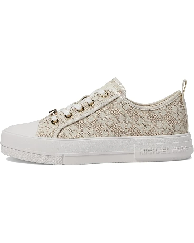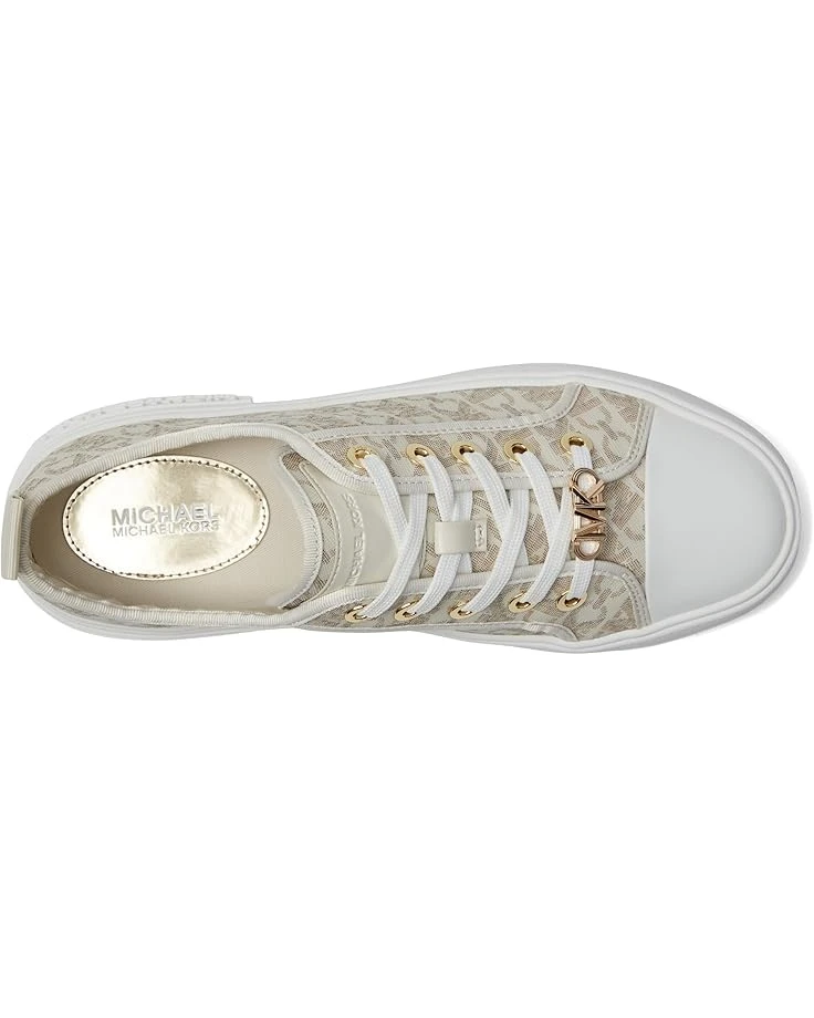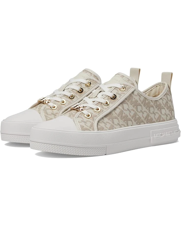 - Let your steps talk to the air by wearing MICHAEL Michael Kors® Evy Lace-Up 9925733 footwear. The sneakers have leather upper, textile lining, and removable textile insole. A round toe with protective toe-cap and lace closure offer perfect traction. The shoes have heel pull-tabs. A flat platform gives consistency to the speed.