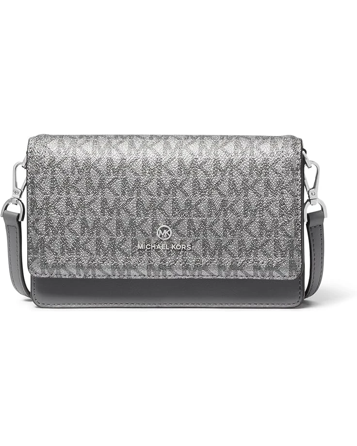 - The MICHAEL Michael Kors® Jet Set Charm Small Phone Crossbody is a versatile and stylish accessory for your daily essentials. Made from the brand’s signature logo-printed canvas and leather, it boasts polished hardware for a luxurious finish. The crossbody strap is adjustable for your convenience, and the exterior features a convenient back snap pocket. Inside, you’ll find front zip and slip pockets, along with eight card slots, providing ample space for your belongings. The snap fastening ensures the security of your items.