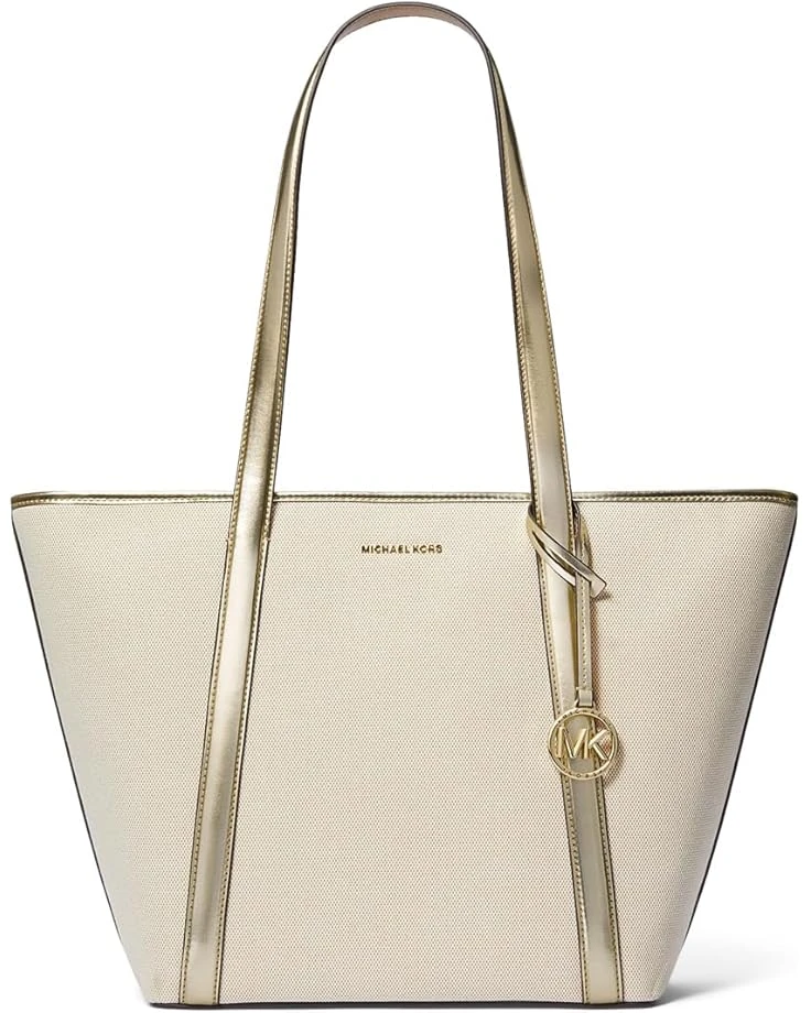 - You will never fall short of space for organizing and carrying your everyday essentials when you choose the MICHAEL Michael Kors® Jet Set Travel Large Top Zip Tote. Lightweight, versatile, and sophisticated, this bag features a durable polyester construction with a textured exterior for a striking appeal, a zippered top closure for a secure organization, and dual top handles for ease of carrying.