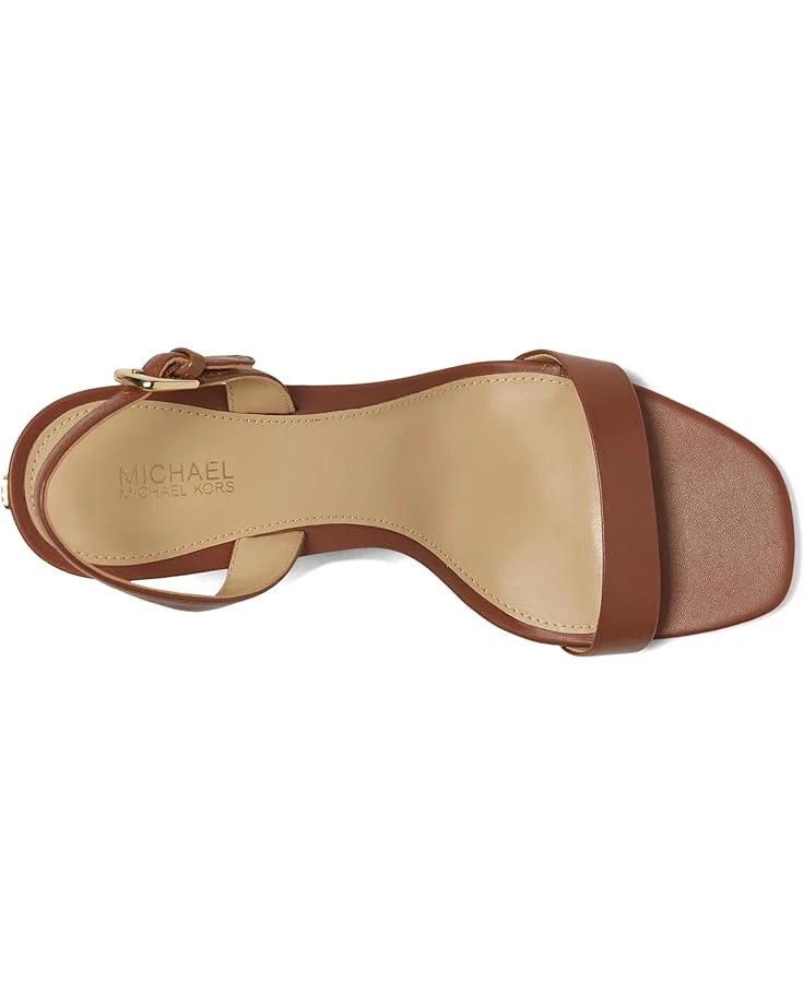 - Look seamlessly classy wearing the MICHAEL Michael Kors® Kasia Heeled Sandal. Crafted from leather upper, polyurethane lining, and faux leather insole, this pair of heels features minimalist design, sleek stiletto heel, round toe, back strap with buckle closure.