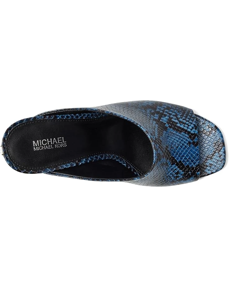 - The MICHAEL Michael Kors® Luna Mule Sandals boast an on-trend high vamp with a fashionable kicked-in lacquered heel design. Featuring a slip-on style, the square toe footwear has polyurethane upper construction, faux leather lining and insole.