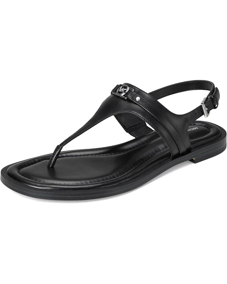 - The MICHAEL Michael Kors® Mandy Thong Sandal is a flat casual thong sandal that is a seasonal must-have as it is effortless and perfect for any wardrobe, combining simplicity with signature MK aesthetic featuring MK facet charm on upper with padded insole. Crafted from PVC upper, polyurethane lining, and faux leather insole, this pair of sandal features open round toe, extra padded sock, adjustable ankle strap, and buckled closure.