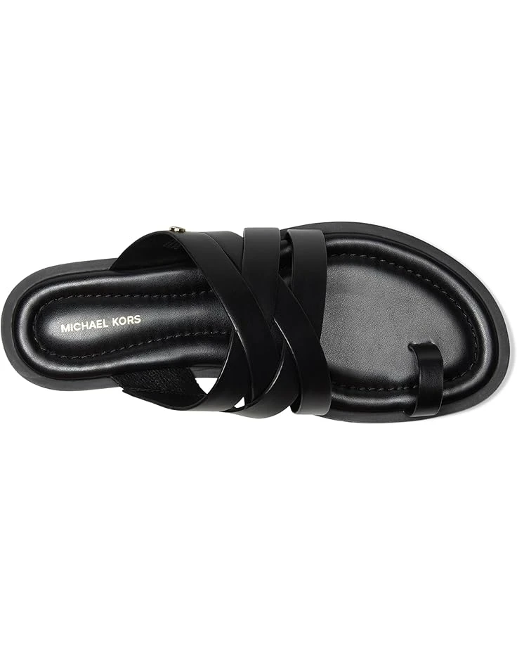 - The MICHAEL Michael Kors® Nora Thong Sandals are flat-toe thong sandals centered on craftsmanship and heritage aesthetics elevated by a beautiful handwoven technique. Their cushioned footbed and flex rubber outsole offer added comfort. The leather upper features a strappy design and a slip-on style. These leather sandals are made of a faux leather insole, extra padded footbed, and polyurethane lining, making them both comfortable and durable.