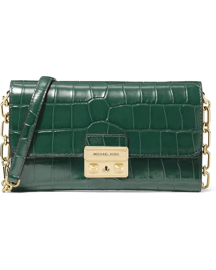 - The MICHAEL Michael Kors® Tribeca Large Wallet On A Chain Crossbody features a removable strap that allows it to be carried as a shoulder bag, a crossbody, or a clutch. This versatile bag is crafted from leather that can withstand everyday wear and tear. The flap closure of the purse keeps your stuff secure while the ten pockets offer enough space to organize your money and cards.